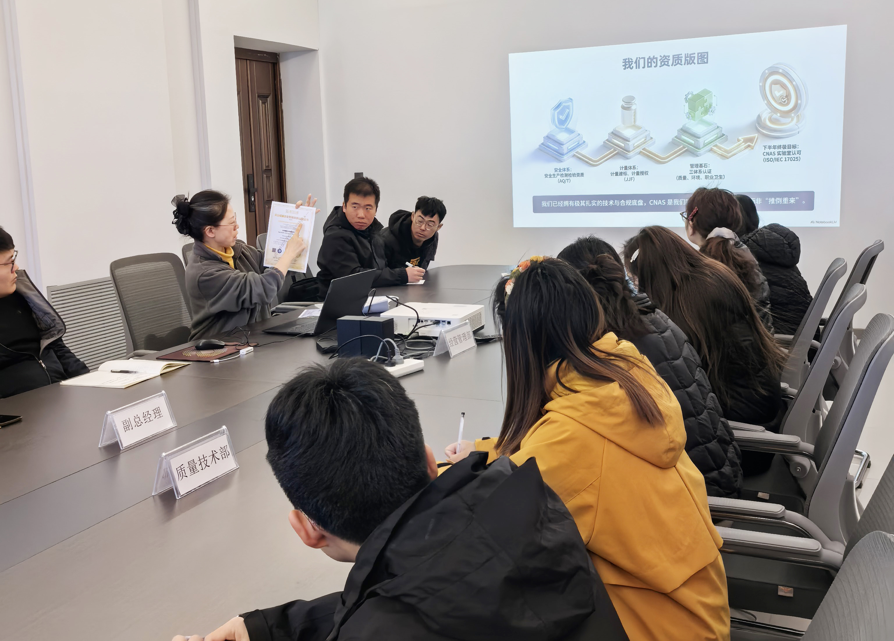 ——我司按年度培训计划组织开展全员资质体系培训,对标国 际标准推进CNAS认可准备
